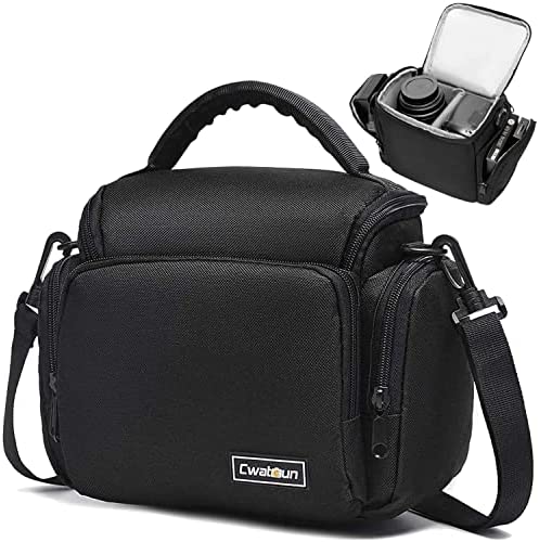 Cwatcun Single Shoulder Crossbody Compact Camera Bag Case Compatible for Canon Nikon Sony SLR DSLR Mirrorless Cameras and Lenses Waterproof Black
